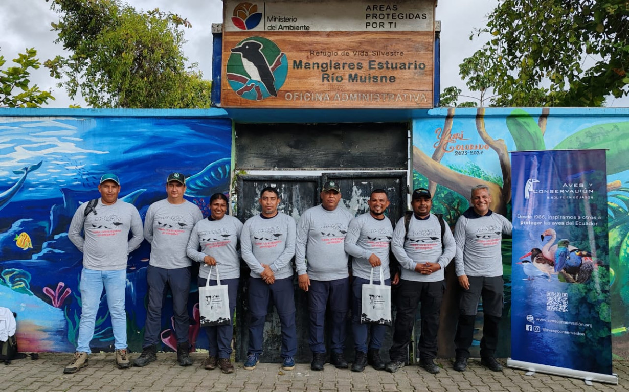 Entre el 26 y 28 de febrero, se realizó un taller en el Área Nacional de Recreación Playas Villamil, y entre el 14 y 17 de abril, se replicó la experiencia en el Refugio de Vida Silvestre Manglares del Estuario de Río Muisne (RVS MERM). donde técnicos y guardaparques fueron capacitados en protocolos de monitoreo del Proyecto Regional de Aves Playeras del Pacífico (#MigratoryShorebirdProject).